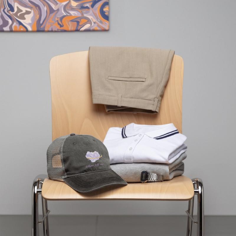 Introducing the Pigment Dyed Trucker Hat, a stylish and durable addition to any casual wardrobe. This cap features a self-fabric front panel lining, ensuring a comfortable fit and enhanced durability. The front panel is also adorned with two sewn eyelets, adding a touch of classic style while improving breathability. The cap includes a plastic snap back closure, allowing you to easily adjust it for the perfect fit. With its unique pigment-dyed finish, this trucker cap offers a cool, vintage look that pairs well with any outfit, perfect for sunny days out or casual wear.