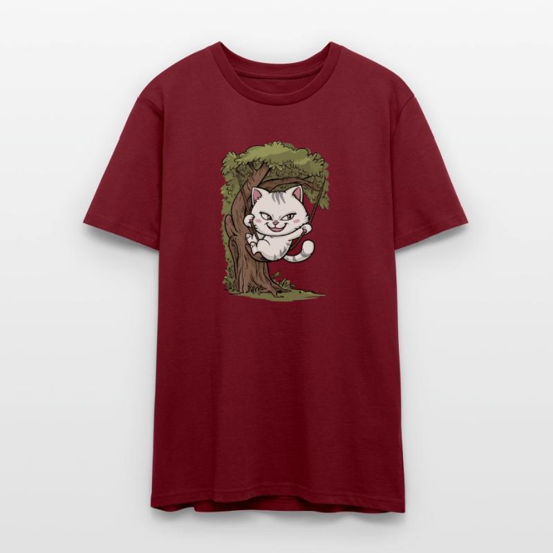Mischievous White Cat Swinging On Tree, Rope Swing